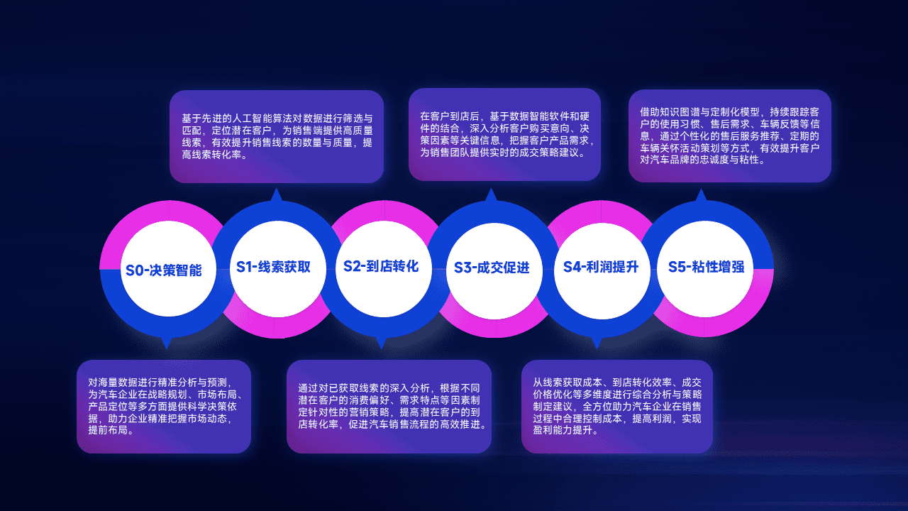 通过拓宽潜在客户来源、、优化线索分配并提高到店转化率,,,以增强销售效率。。。同时,,利用线索数据不断优化分析模型,,,,有效提升转化率,,,扩大营销影响力。。。。